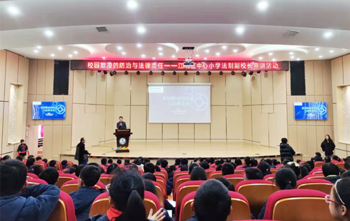 邵核念律师从什么是校园欺凌,校园欺凌的起因,校园欺凌的实例及法律责任,如何预防校园欺凌四个方面讲述了新时代新少年应如何从自身做起,提高法治意识,对校园欺凌说“不”。邵核念律师用小例子和同学们进行开场互动,同学们回答问题踊跃、积极。随后,邵核念律师又以亲自办理的案例为同学们讲解了几种典型的校园欺凌犯罪案例,通过联系实际,以案释法,告诫每位学生增强法制观念,增强法律意识,面对校园欺凌时,首先要学会保护自己,不能正面冲突,但也不要因害怕而选择沉默,同时要勇于用法律的武器维护自身的权益。